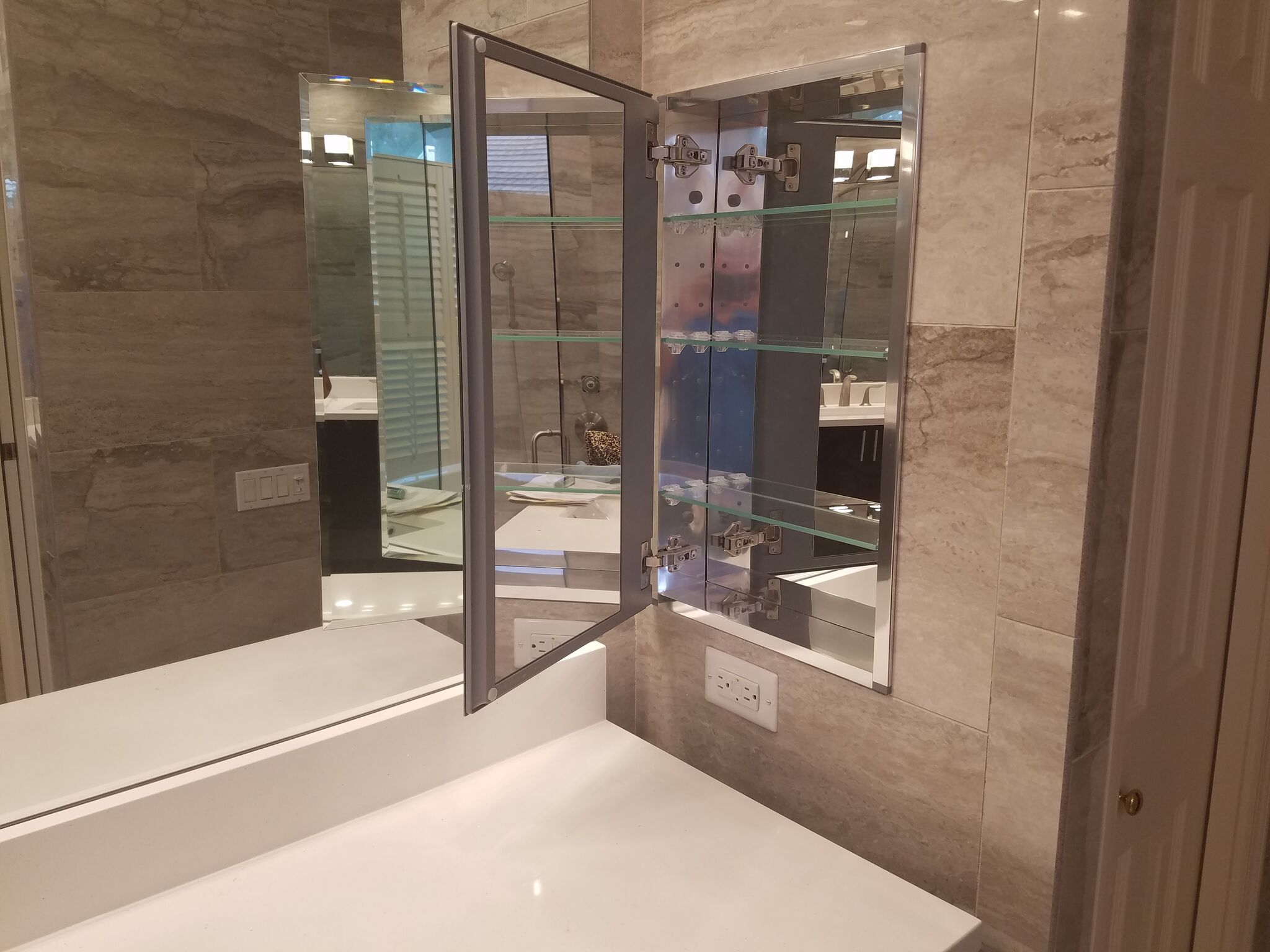 This was a project that had a 3 separate bathroom remodel in Sarasota. The client wanted the main bathroom to be transformed in to a Spa “look and feel”. Above and Beyond met the clients wishes by delivering this Sarasota Bathroom Remodel in Gray High Gloss Tile throughout. The complete Bathroom Remodel included a new tub, showers, tile, flooring, paint and bespoke manufactured vanities. As well as the Bathroom Remodel Above and Beyond took care of all plumbing and electrical work.