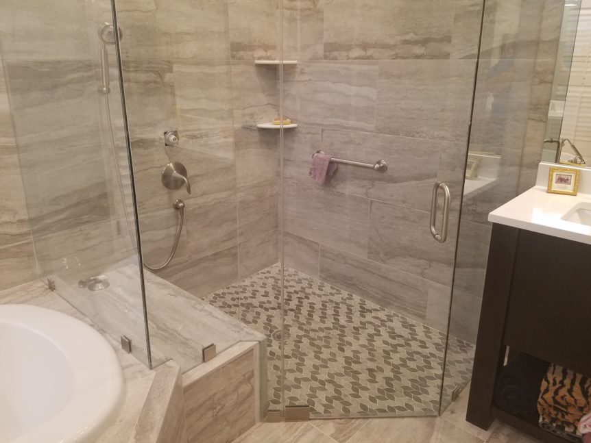 This was a project that had a 3 separate bathroom remodel in Sarasota. The client wanted the main bathroom to be transformed in to a Spa “look and feel”. Above and Beyond met the clients wishes by delivering this Sarasota Bathroom Remodel in Gray High Gloss Tile throughout. The complete Bathroom Remodel included a new tub, showers, tile, flooring, paint …
